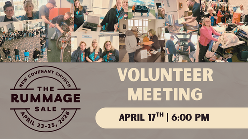 Planning to volunteer at our upcoming Rummage Sale? We’d love for you to join us for our Volunteer Meeting on April 17th at 6:00pm in the Worship Center!